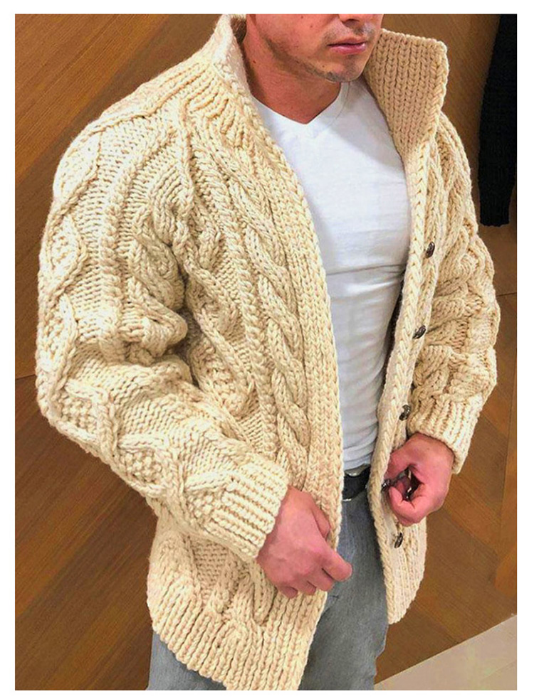 Sweter męski z kołnierzem stojącym i haftowanymi kwiatami